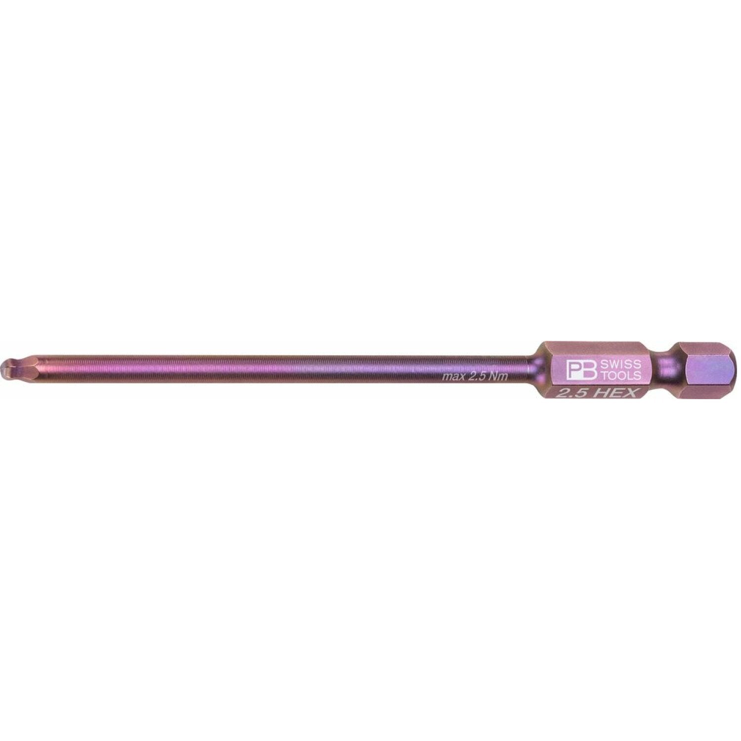 PB Swiss Tools PB E6L.212/2,5 PrecisionBit, 1/4" Bits, E6, Hex with Ball End, Long, 2.5mm x 70mm