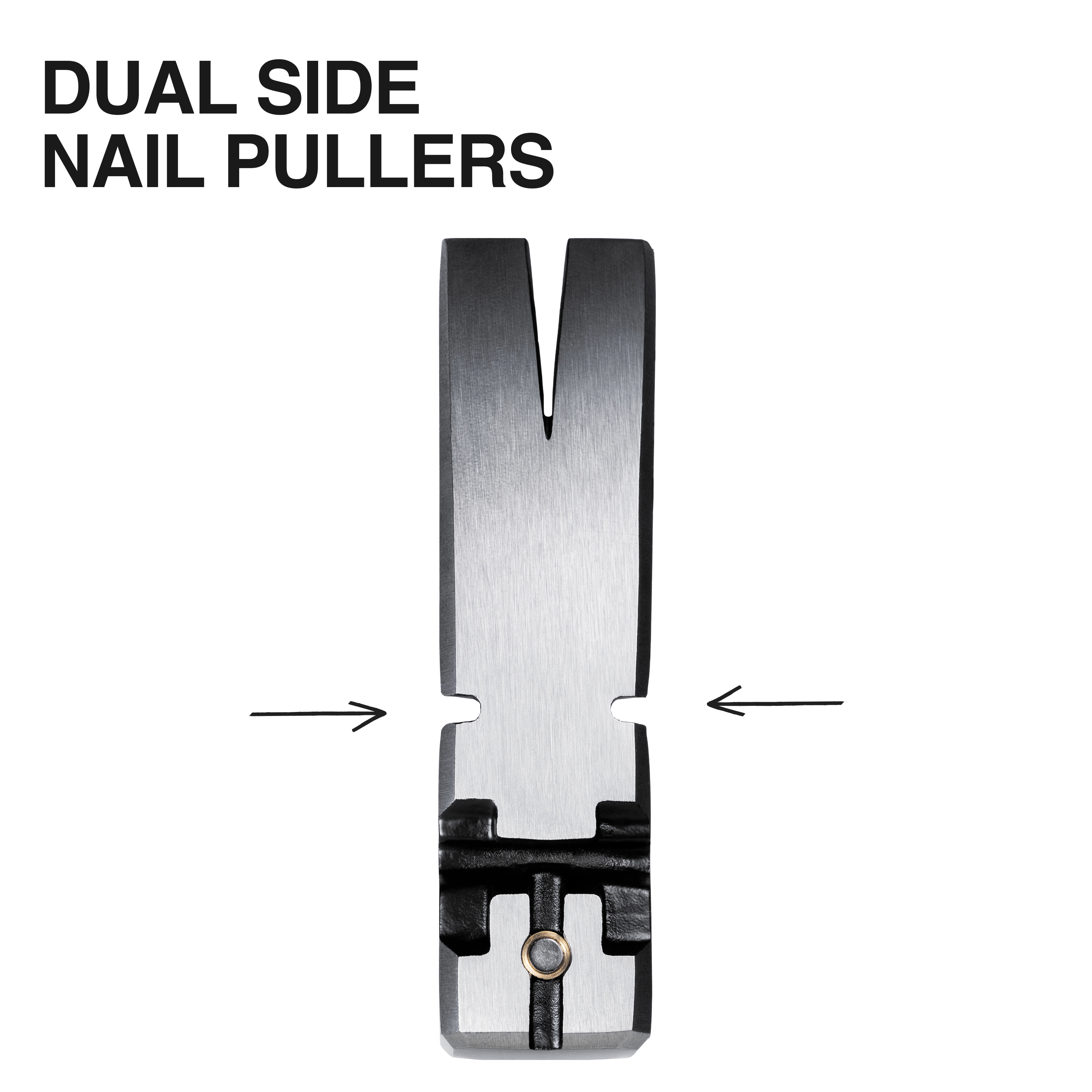 • Dual-sided nail pullers provide enhanced leverage for easy nail removal, even in tight spaces