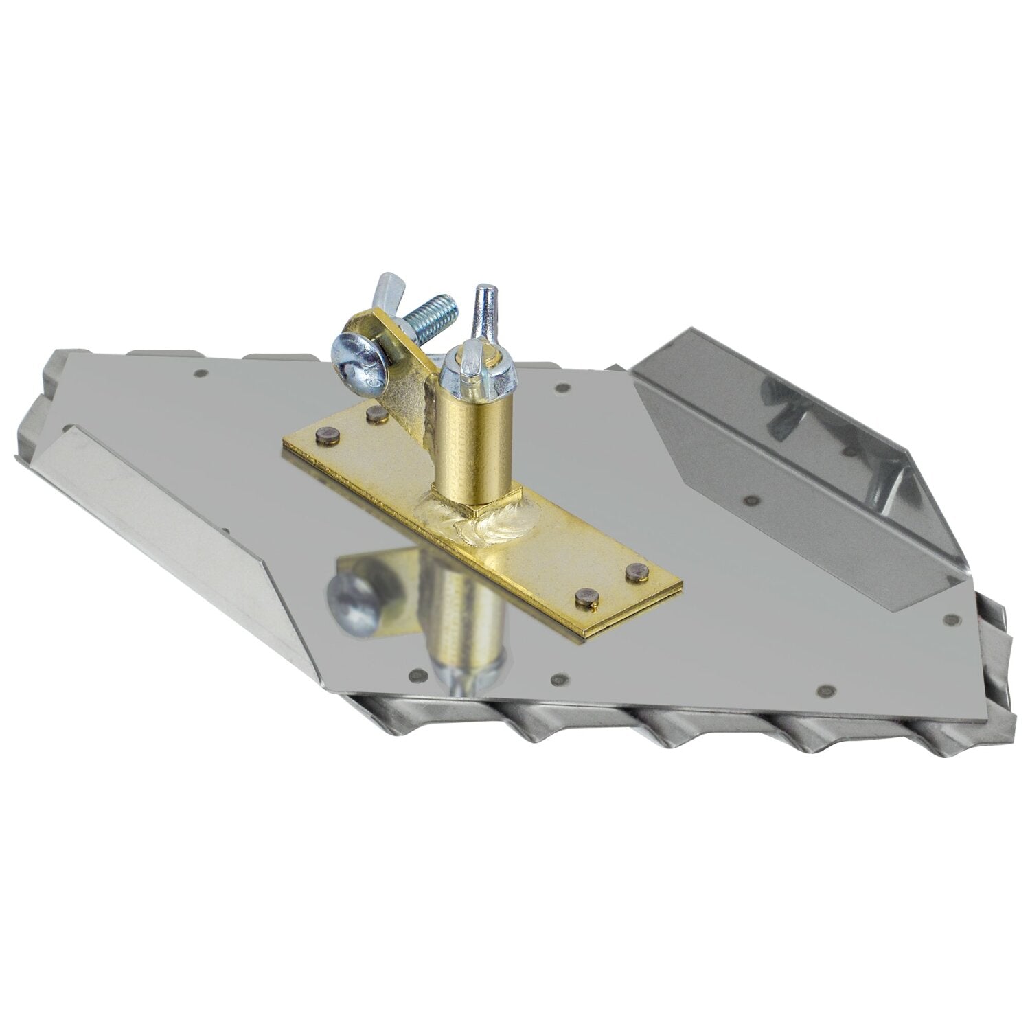 Ideal for cutting grooves in sidewalk safety ramps where water drainage and traction are critical. The strong stainless steel blade creates a clean smooth cut with easy clean-up. The left side ramp groover features a 1/4" x 1/4" groover bit is formed by a single piece of stainless steel for a completely smooth groove. The grooves are spaced 1-1/2" apart on center to create traction on the surface. A top plate secures the tool and provides additional strength for moving across safety ramps. Use as a set of 3 (Left, Straight, and Right) for best results, sold individually. Use Kraft Tool #CC081 and #CC082 for complete coverage. The Swivel Bracket is designed to adjust 360° degrees for the versatility to let you work from any angle. Lockdown the angle of the handle with a twist of the wingnut on top. Use with Narrow Clevis Handles (#CC656), sold separately. Use with a Clevis Handle Adapter (#CC332N or #CC332LN) for use with bull float extension handles, all sold separately. A matching Hand Groover (#CF080) is also available.