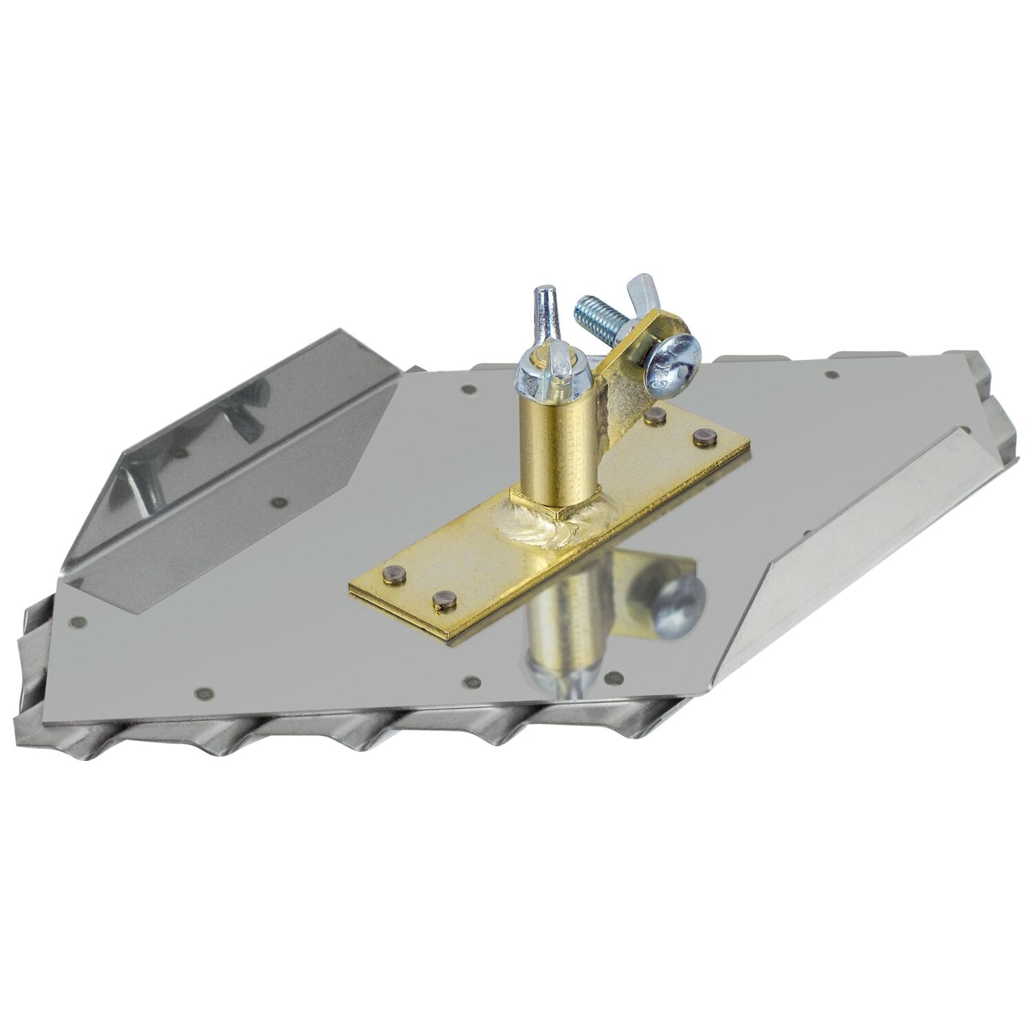 Ideal for cutting grooves in sidewalk safety ramps where water drainage and traction are critical. The strong stainless steel blade creates a clean smooth cut with easy clean-up. The right side ramp groover features a 1/4" x 1/4" groover bit is formed by a single piece of stainless steel for a completely smooth groove. The grooves are spaced 1-1/2" apart on center to create traction on the surface. A top plate secures the tool and provides additional strength for moving across safety ramps. Use as a set of 3 (Left, Straight, and Right) for best results, sold individually. Use Kraft Tool #CC080 and #CC081 for complete coverage. The Swivel Bracket is designed to adjust 360° degrees for the versatility to let you work from any angle. Lockdown the angle of the handle with a twist of the wingnut on top. Use with Narrow Clevis Handles (#CC656), sold separately. Use with a Clevis Handle Adapter (#CC332N or #CC332LN) for use with bull float extension handles, all sold separately. A matching Hand Groover (#CF082) is also available.