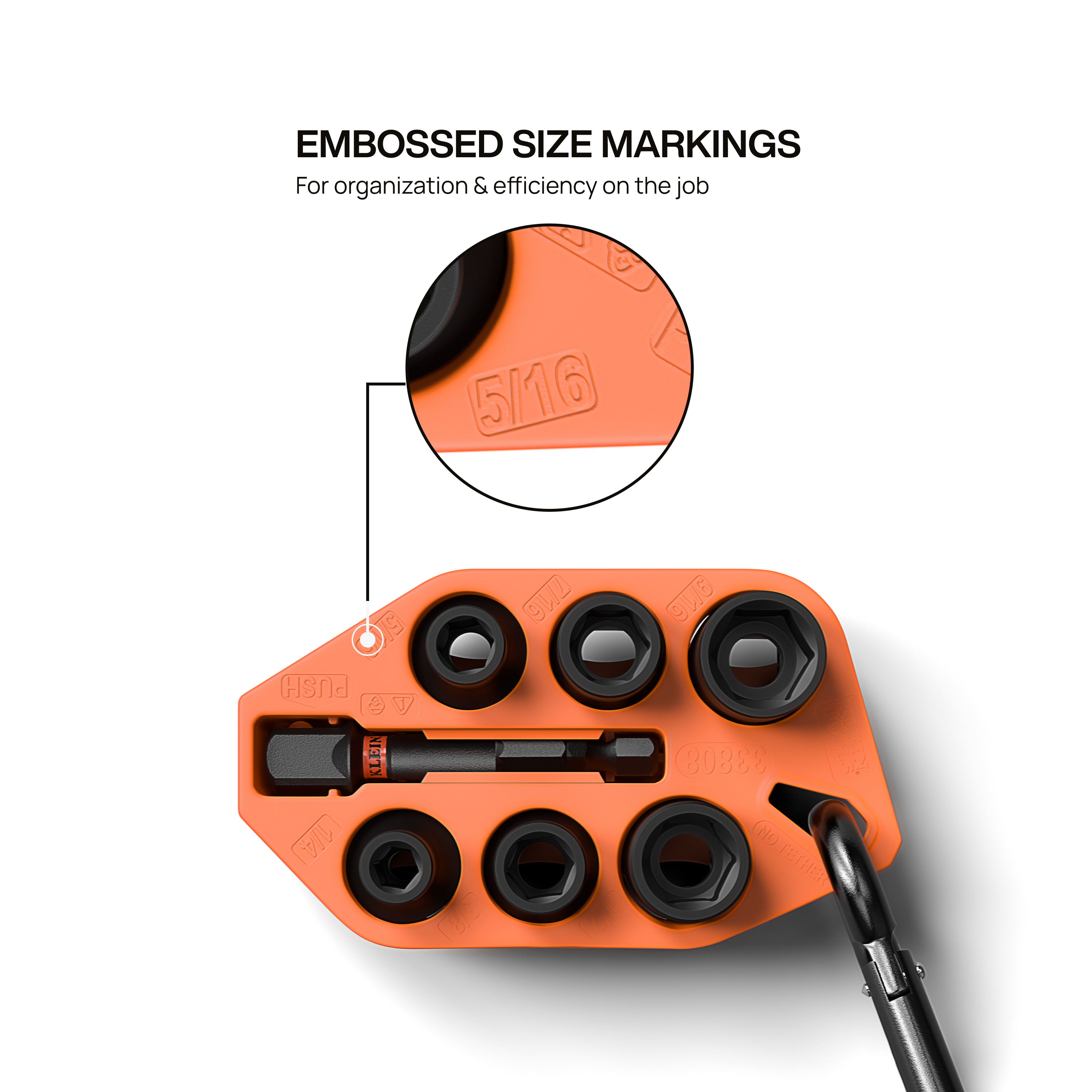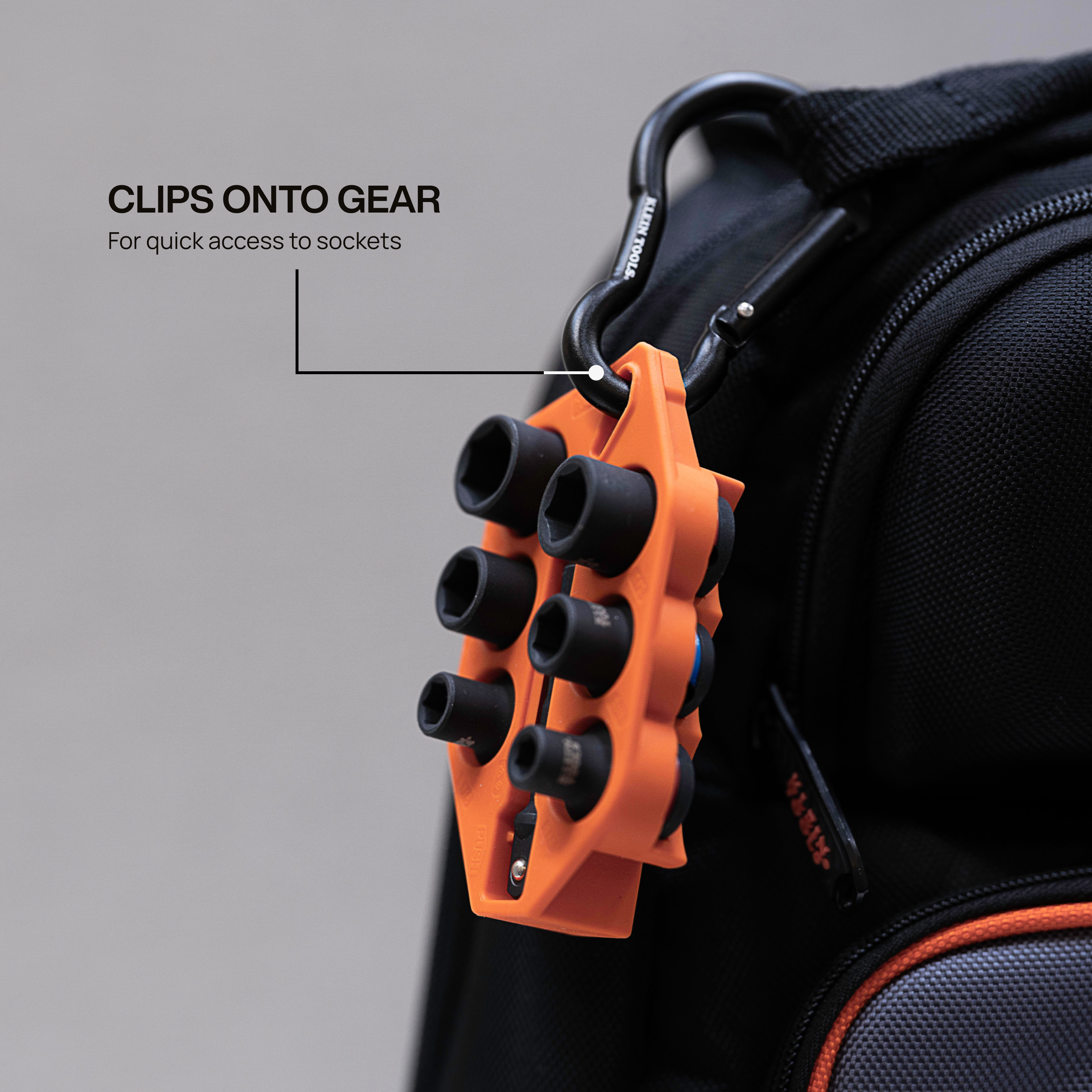 • Convenient carabiner attachment lets you secure the socket sleeve to backpacks, tool bags, or belts for instant access and improved job site productivity