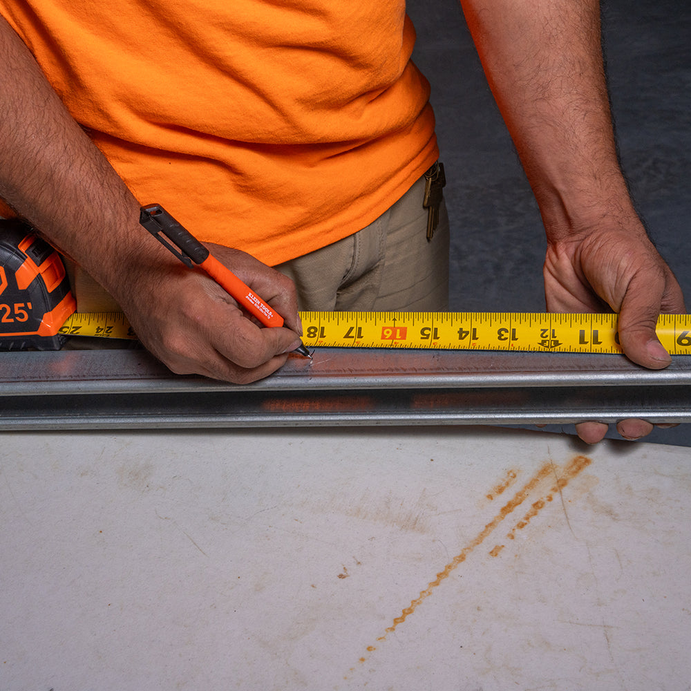 - Achieves ultra fine lines when marking on OBS, wood, concrete, metal, plastic and other jobsite surfaces