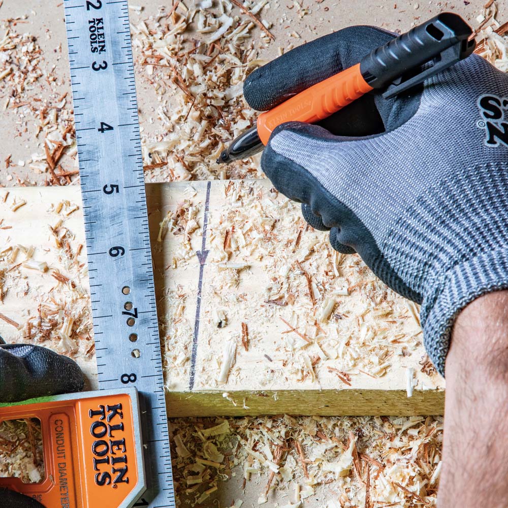 - Achieves fine lines when marking on OBS, wood, concrete, metal, plastic and other jobsite materials