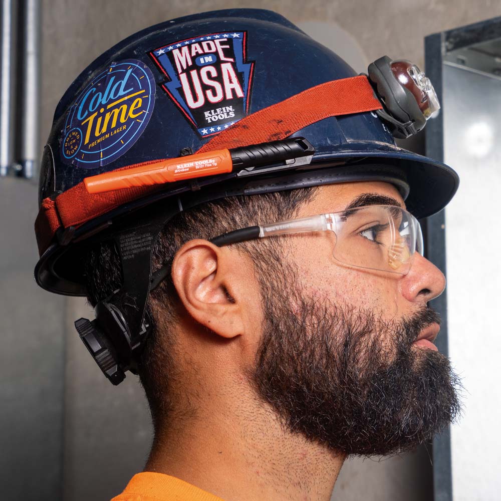 - Integrated hard hat clip designed to fit most hard hat brims, along with a lanyard loop for quick access and convenient carrying