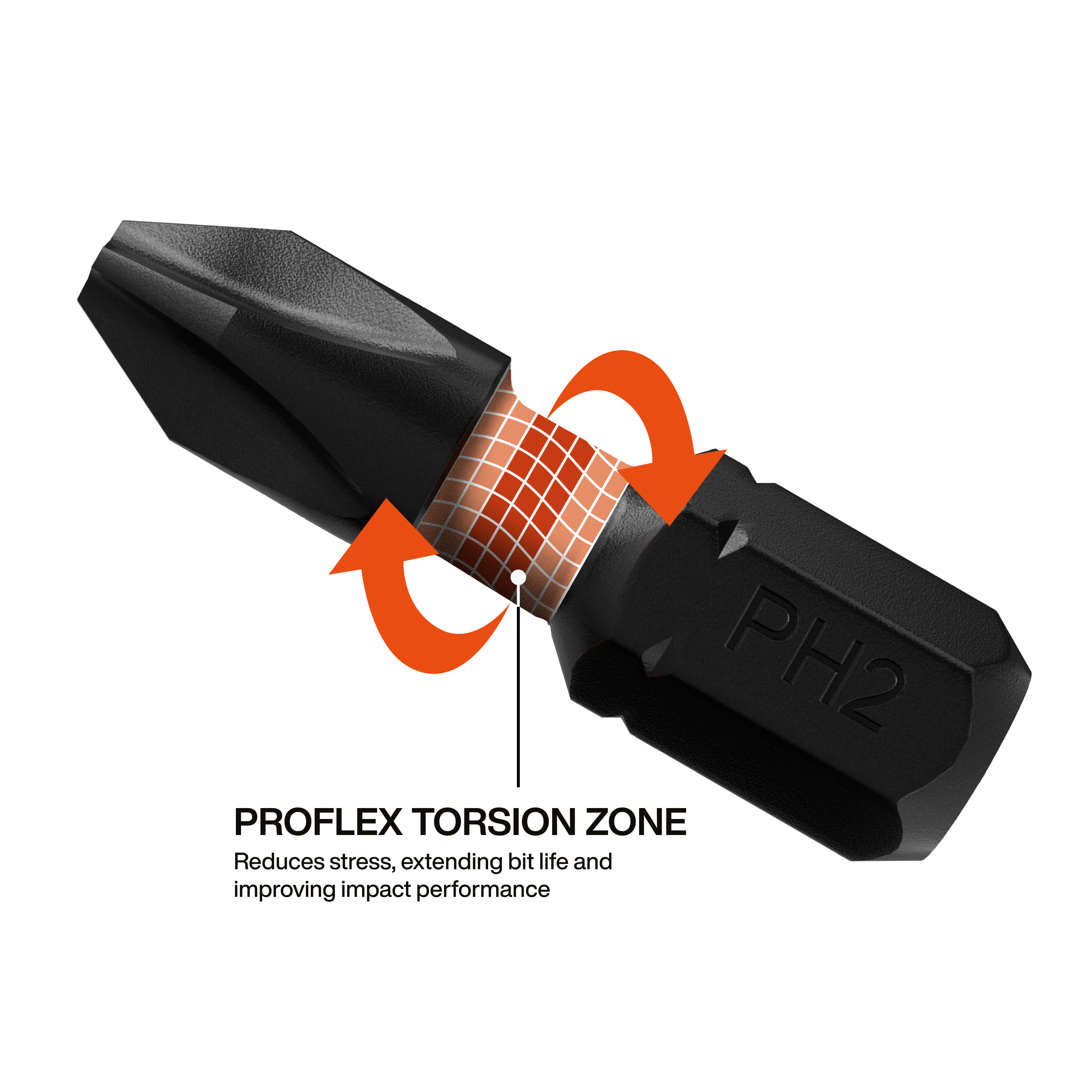 - ProFlex torsion zone reduces stress, extending bit life and improving impact performance