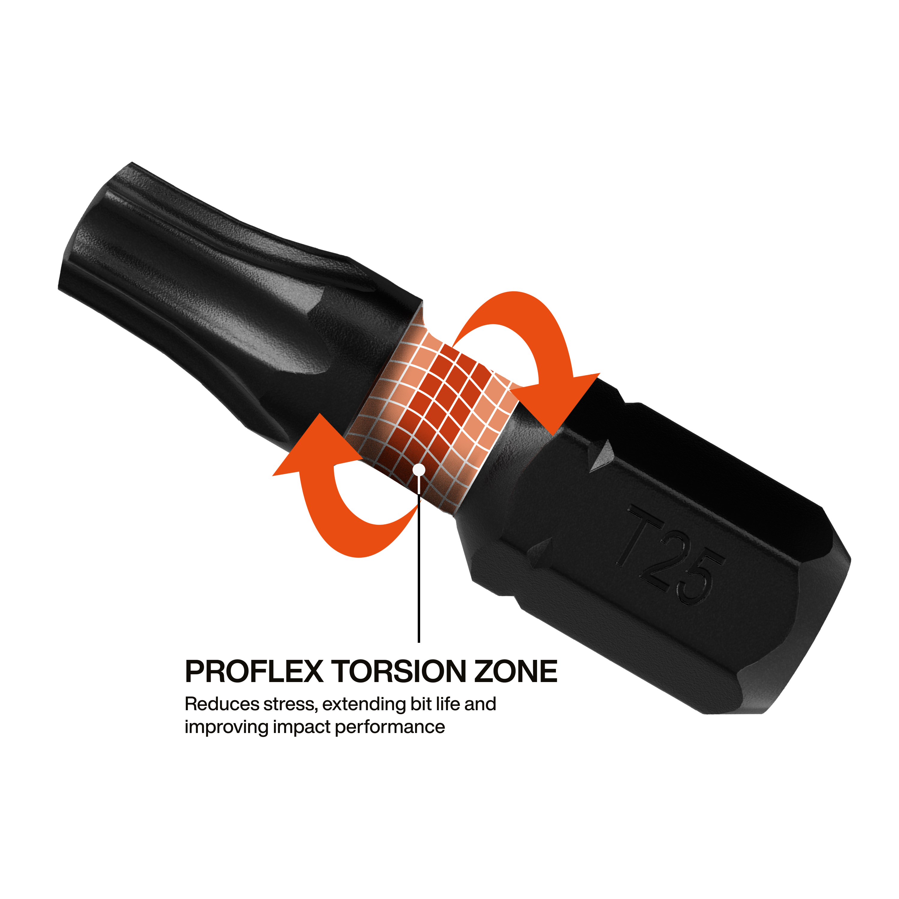 - ProFlex torsion zone reduces stress, extending bit life and improving impact performance