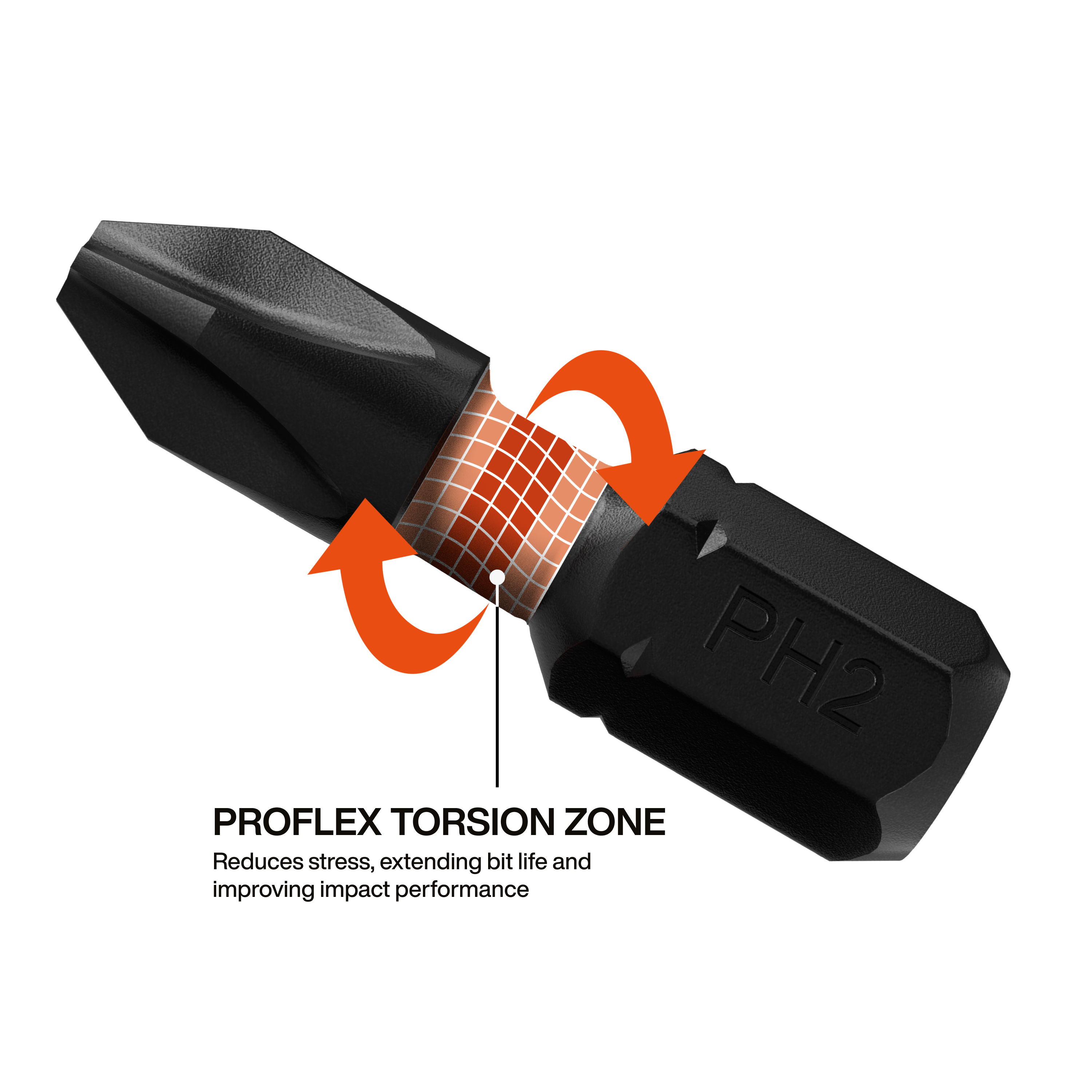 - ProFlex torsion zone energy absorbing design to reduce stress, extending bit life and improving impact performance