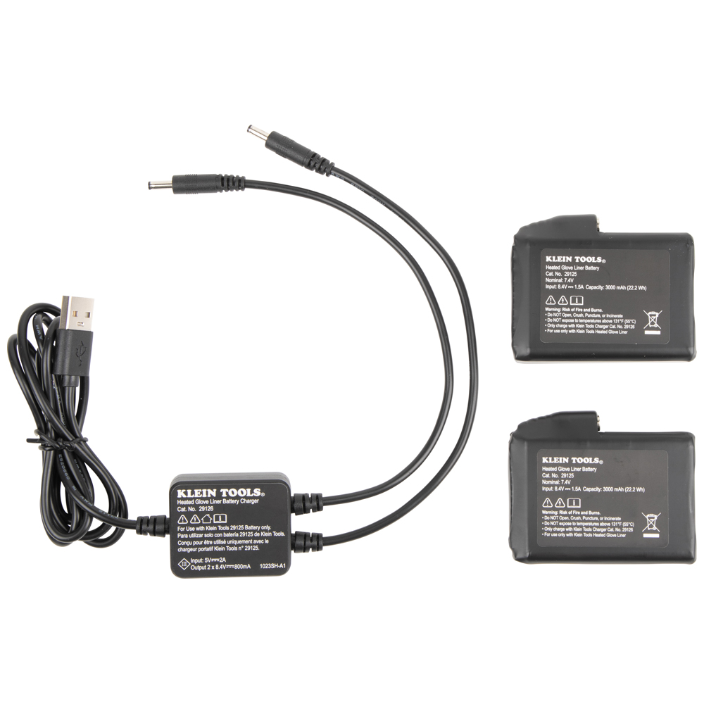 Klein Tools Heated Glove Liners are designed to be worn under work gloves to provide warmth to the hands when working in the cold. Powered by rechargeable replaceable batteries for low and high heat settings, these low-profile flexible liners help maintain dexterity while hugging the hand to provide focused heat to the fingertips, outer hand and wrist area.