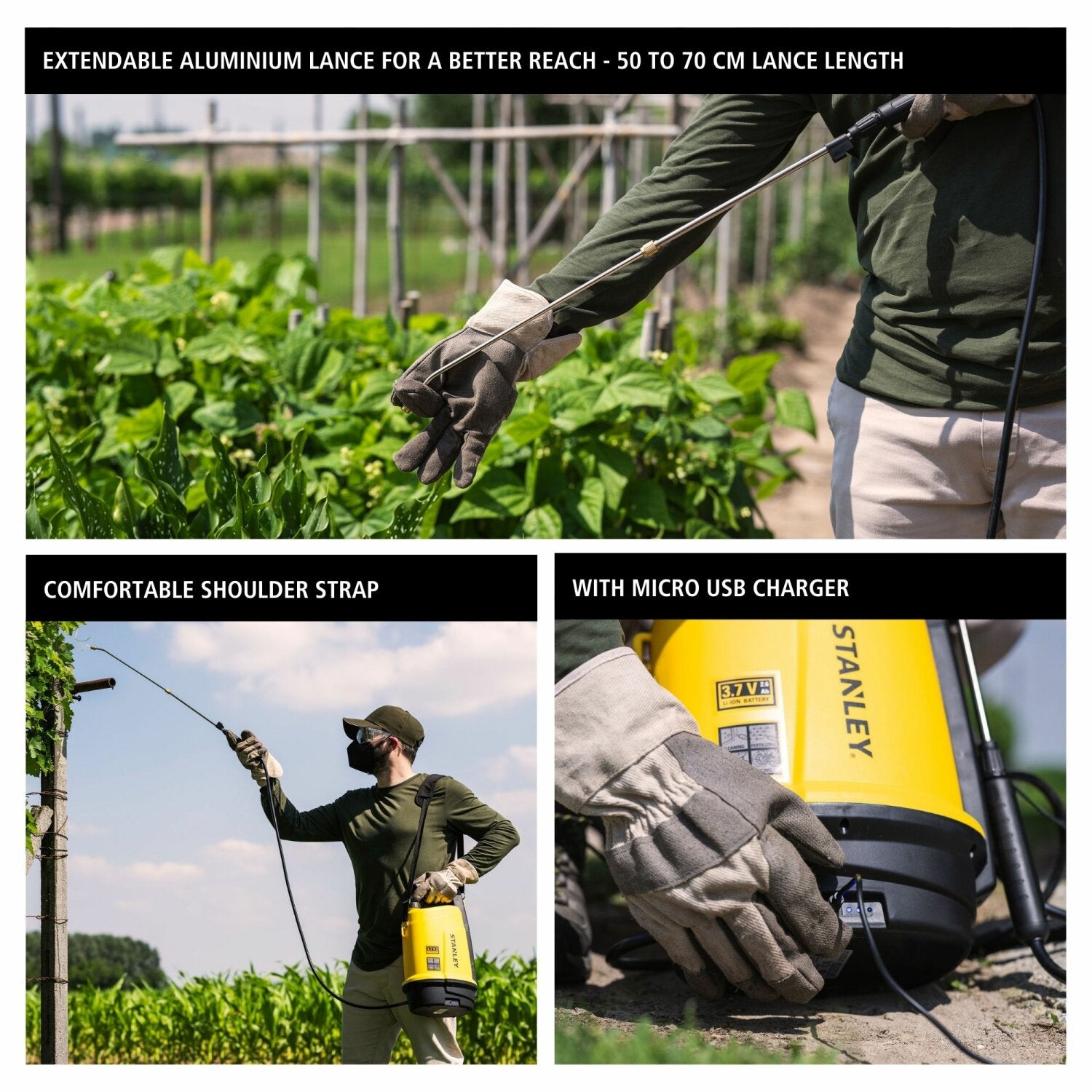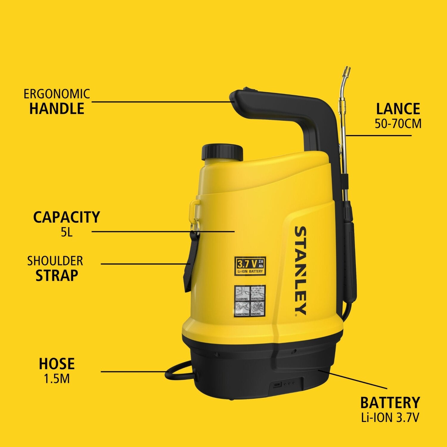This versatile, rechargeable battery-powered pressure sprayer is ideal for a wide range of applications, including gardening, disinfection, fertilization, and cleaning. With a generous 5-liter capacity and a powerful lithium-ion battery (3.7 V/2.6 Ah), it can operate continuously for up to 2.5 hours. The sprayer features an extendable steel lance (50-70 cm) and an adjustable brass nozzle, allowing you to easily change the spray pattern from a fine mist to a strong jet for maximum precision. The adjustable working pressure of 0.5 to 2 bar and a flow rate of 0.33 liters per minute ensure consistent performance and precise results for any task. The LED battery indicator clearly displays the remaining power, while the included micro-USB charger ensures quick and easy charging. For added convenience, the sprayer is equipped with an adjustable shoulder strap, making extended use much more comfortable. A great choice for anyone looking for quality, comfort, and reliability!