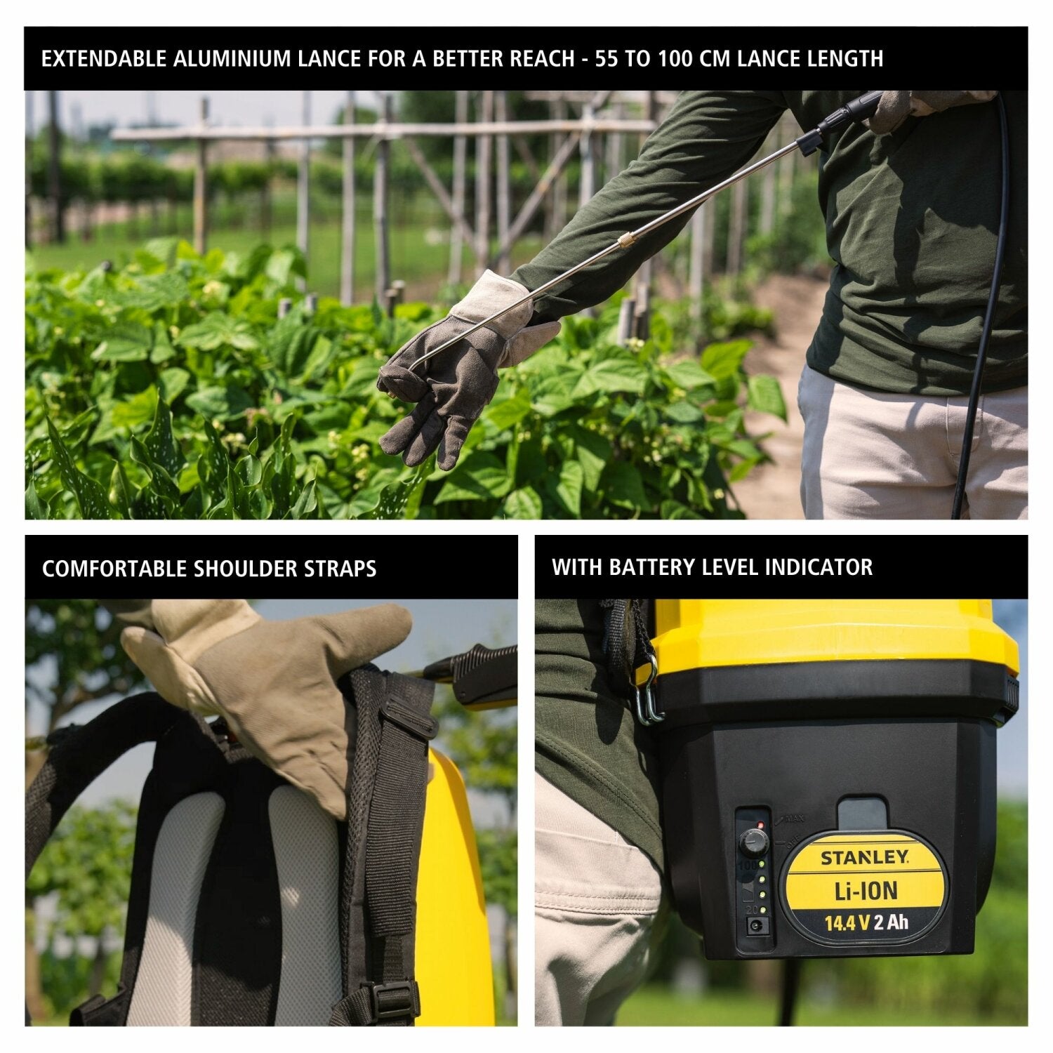 • Flexible Spray Options: The extendable aluminum lance, adjustable from 55 to 100 cm, provides maximum flexibility and allows you to work comfortably, even in hard-to-reach areas. The sprayer also features a high-quality, adjustable brass nozzle, allowing you to customize the spray pattern from a fine mist to a powerful jet, depending on the application.