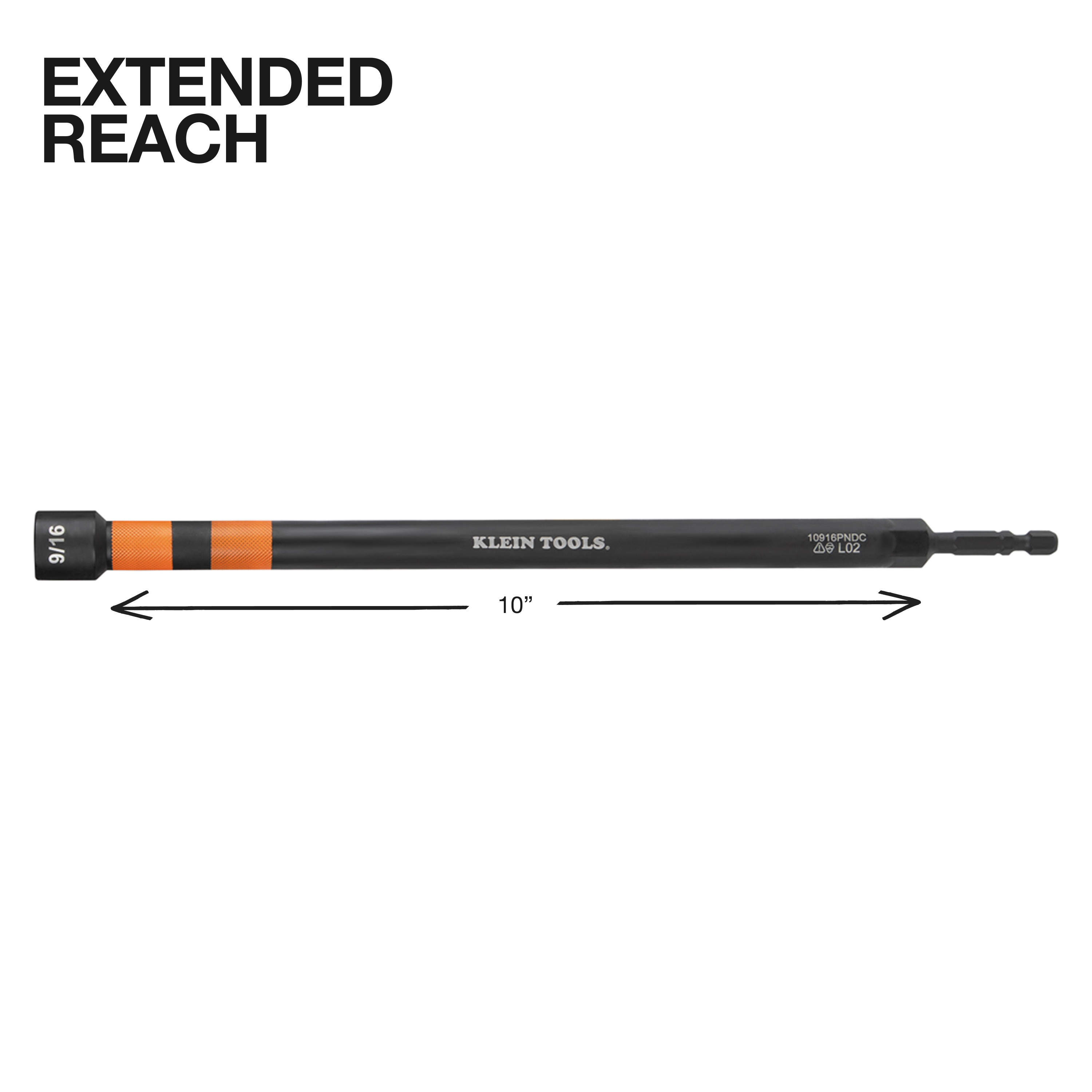 Tradesmen needed a nut setter that could handle heavy-duty impact, grip fasteners securely, and fit where others can't. Klein Tools responded by adding an additional five inches of reach to the shaft of the 9/16-Inch Power Nut Setter, bringing the total reach to ten inches. The extended design makes it easier to reach deep-set fasteners and increase efficiency in tight spaces.