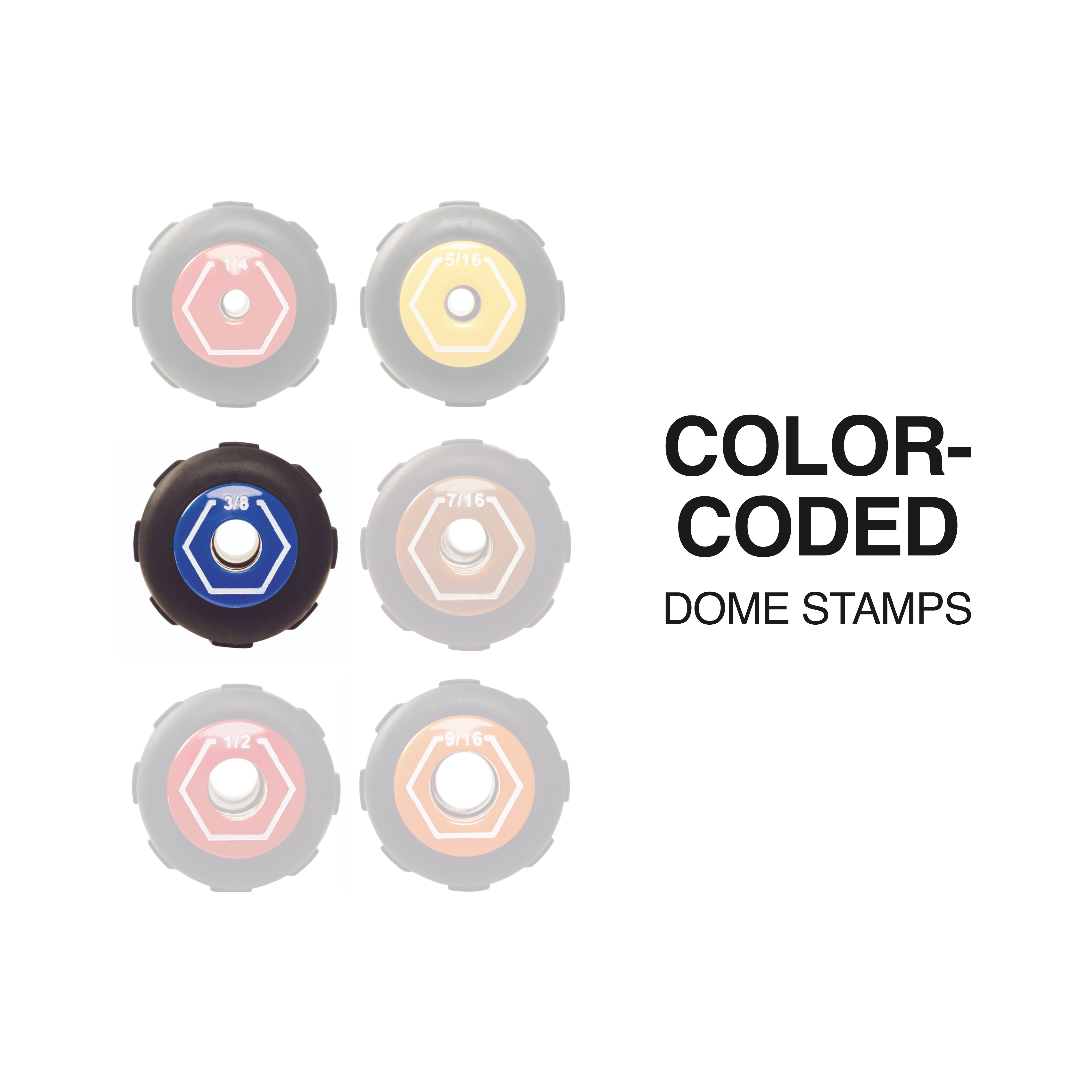 • Color-coded and dome-stamped handle for easy identification of different sizes