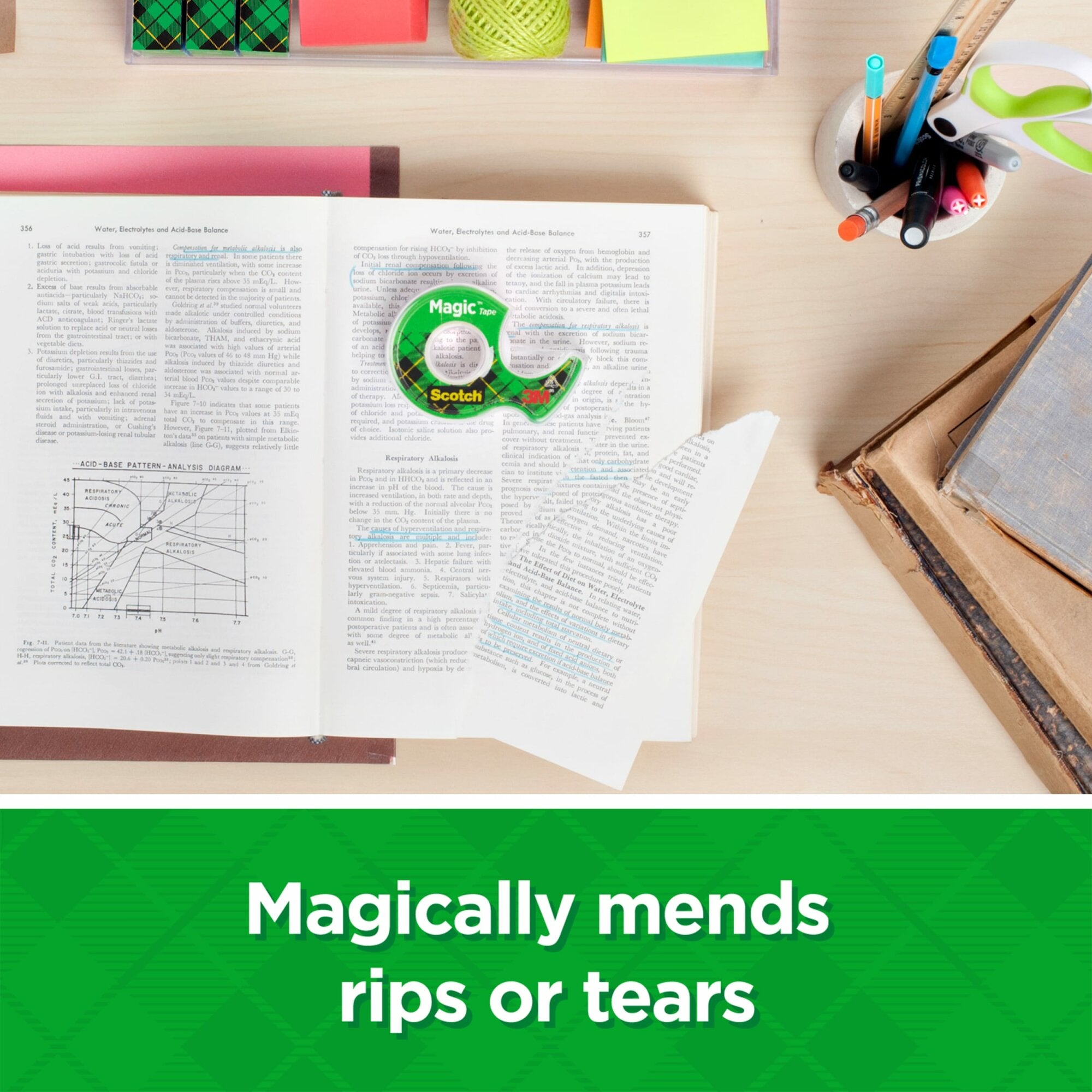 Scotch Magic Tape is the original matte finish, invisible tape. It's the preferred tape for offices, home offices, and schools. Write on it with pen, pencil, or marker.There's nothing more important than mending original documents like birth certificates, final essays, and special photos. One original deserves another. Scotch® Magic™ Tape is the original invisible matte finish tape preferred by homes, schools and home offices. Why? Because it works like magic: It's invisible! Gives you a strong, secure, permanent seal using trusted 3M adhesive technology. And with our easy to use Scotch® Tape dispenser (included), Scotch® Magic™ Tape rolls out smoothly, cuts evenly with no time, energy or tape wasted. Magically mend the many rips and tears of life securely, permanently, and invisibly.