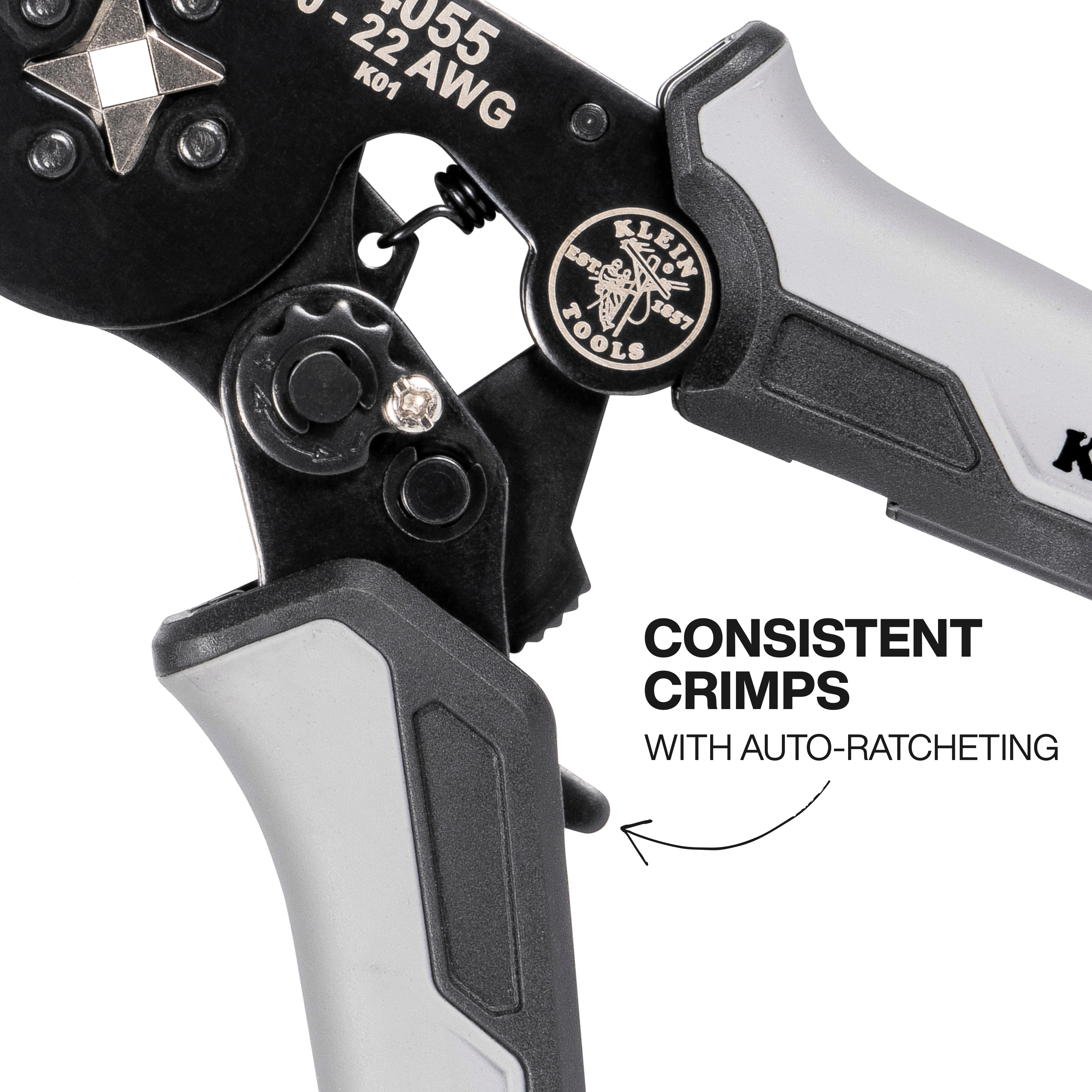 Designed for 10-22 AWG stranded wire terminals, ratcheting crimper delivers precise results across a variety of applications, ensuring versatility and reliability