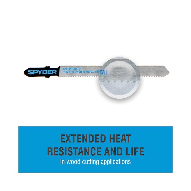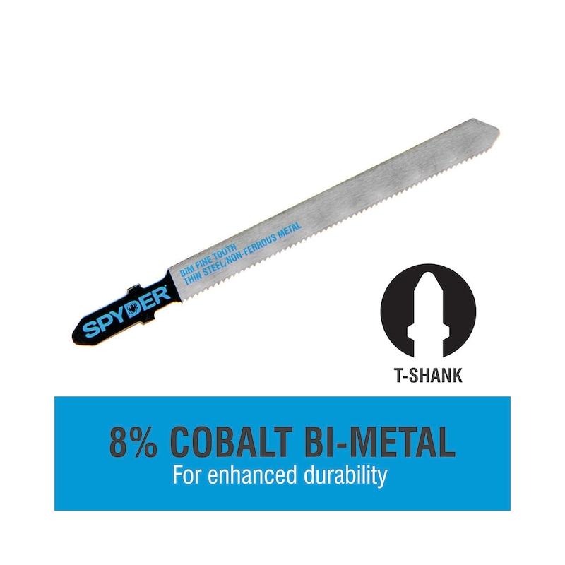 Spyder's made in Germany jig saw blades are ideal for tough cutting tasks that require the clean curve or straightest linear cuts in wood and metal. Bi-metal blades resist heat build-up for exceptional durability in tough cuts. 5pc set includes BiM blades: fine finish (3x), coarse finish (2x), storage case.
