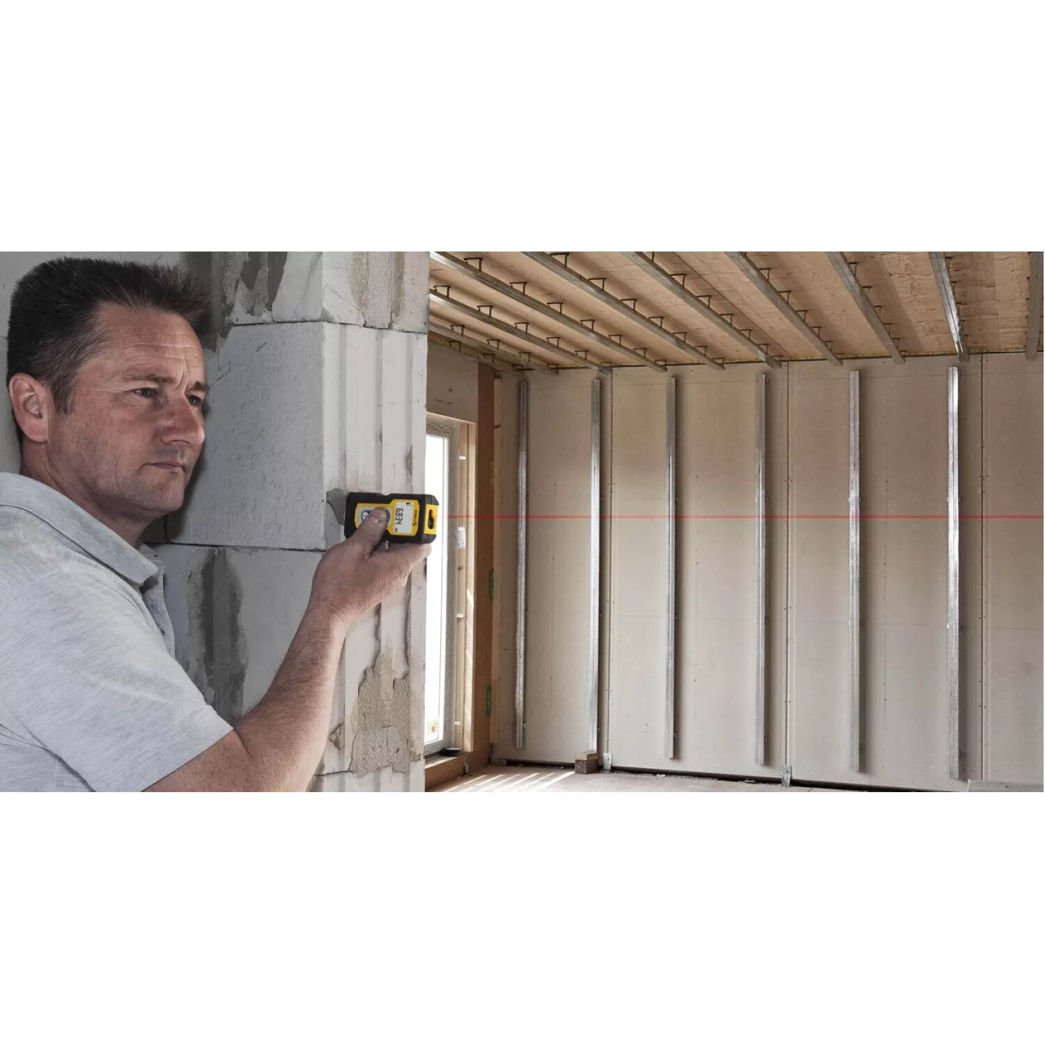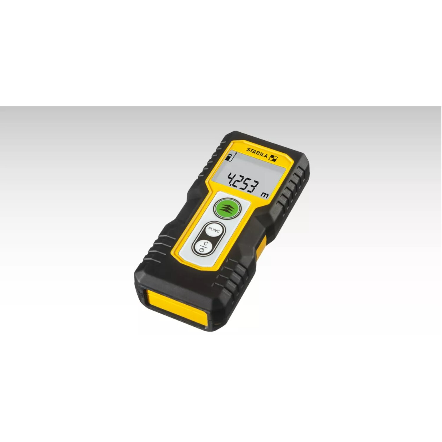 Compact, easy-to-use laser with 4 basic measuring functions: length, area, volume and continuous measurement • The laser delivers quick measurement results and assists you in your daily work, when calculating how much material is needed, for example • The large digits make it easy to read • Impact-resistant housing with shock-absorbent STABILA soft grip casing • Designed for measurements up to 30 m