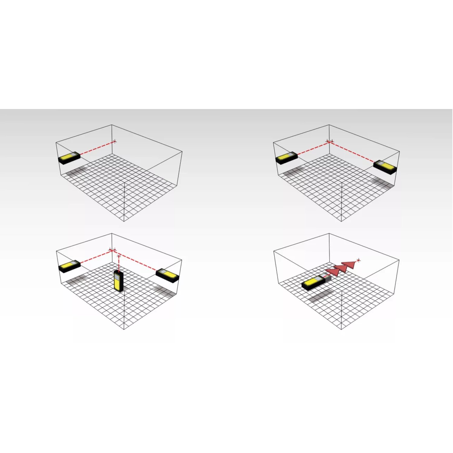 • 4 basic measuring functions: length, area, sq. ft. and continuous measurement.