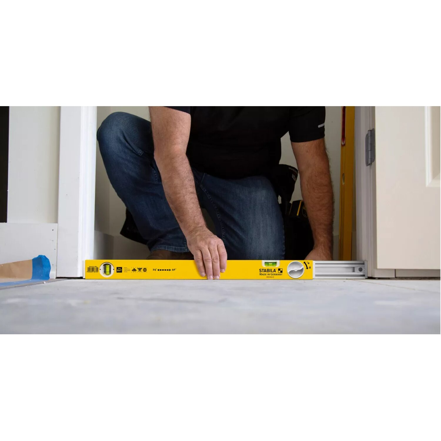 The set now comes with a new header level. We have added the redesigned 24”-40” Type 80 T Extendable Level which fits most door openings found in residential construction. Achieve a perfect fit for headers by simply locking the 80 T to the exact door size using the measuring scale on the level.