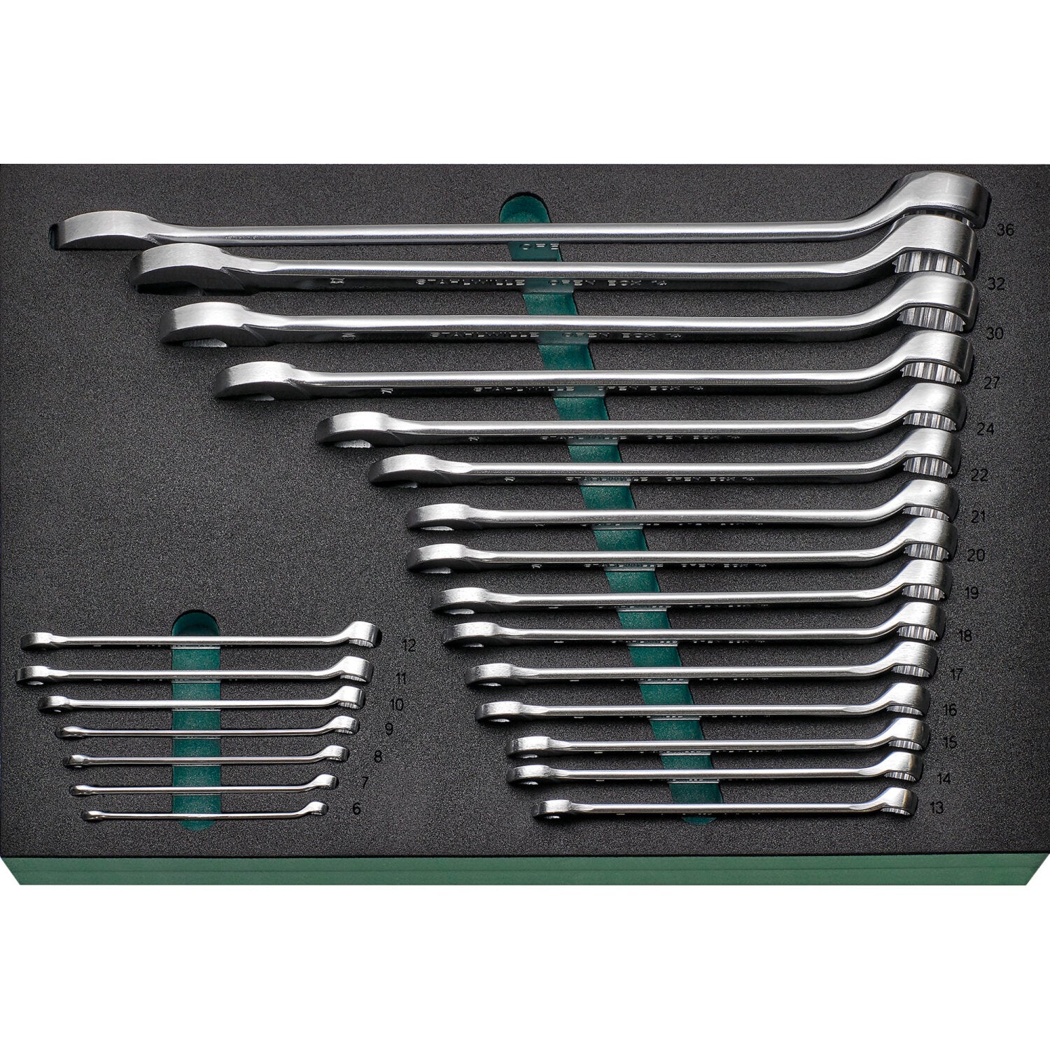 22 combination wrenches No. 14: 6; 7; 8; 9; 10; 11; 12; 13; 14; 15; 16; 17; 18; 19; 20; 21; 22; 24; 27; 30; 32; 36 mm