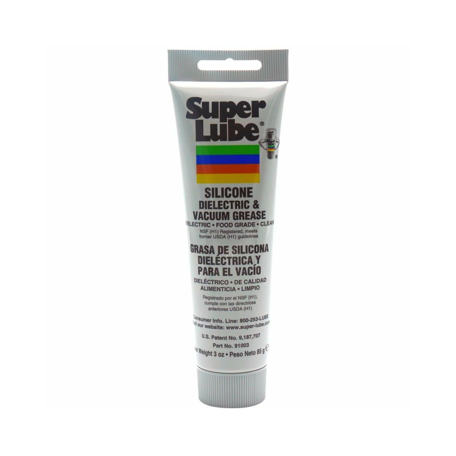 Super Lube® Silicone Dielectric and Vacuum Grease is a specially formulated non-curing silicone compound that exhibits superior performance in both electrical and vacuum applications. Super Lube® Silicone Dielectric and Vacuum Grease seals, protects, and insulates electrical components and connectors. It is waterproof and provides a barrier against moisture and other contaminants in many types of electrical contact points. Super Lube® Silicone Dielectric and Vacuum Grease helps reduce the overall leak rate in vacuum applications by filling the spaces of the gland's surfaces and lowering permeation rates of the elastomer.