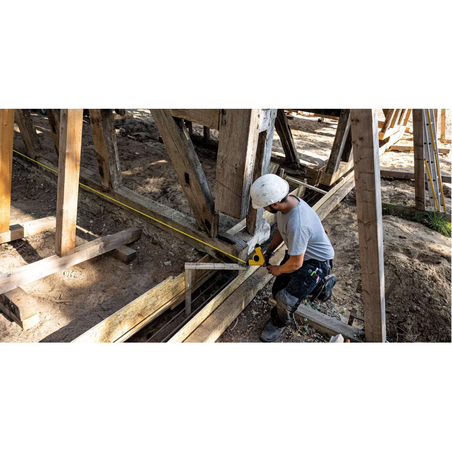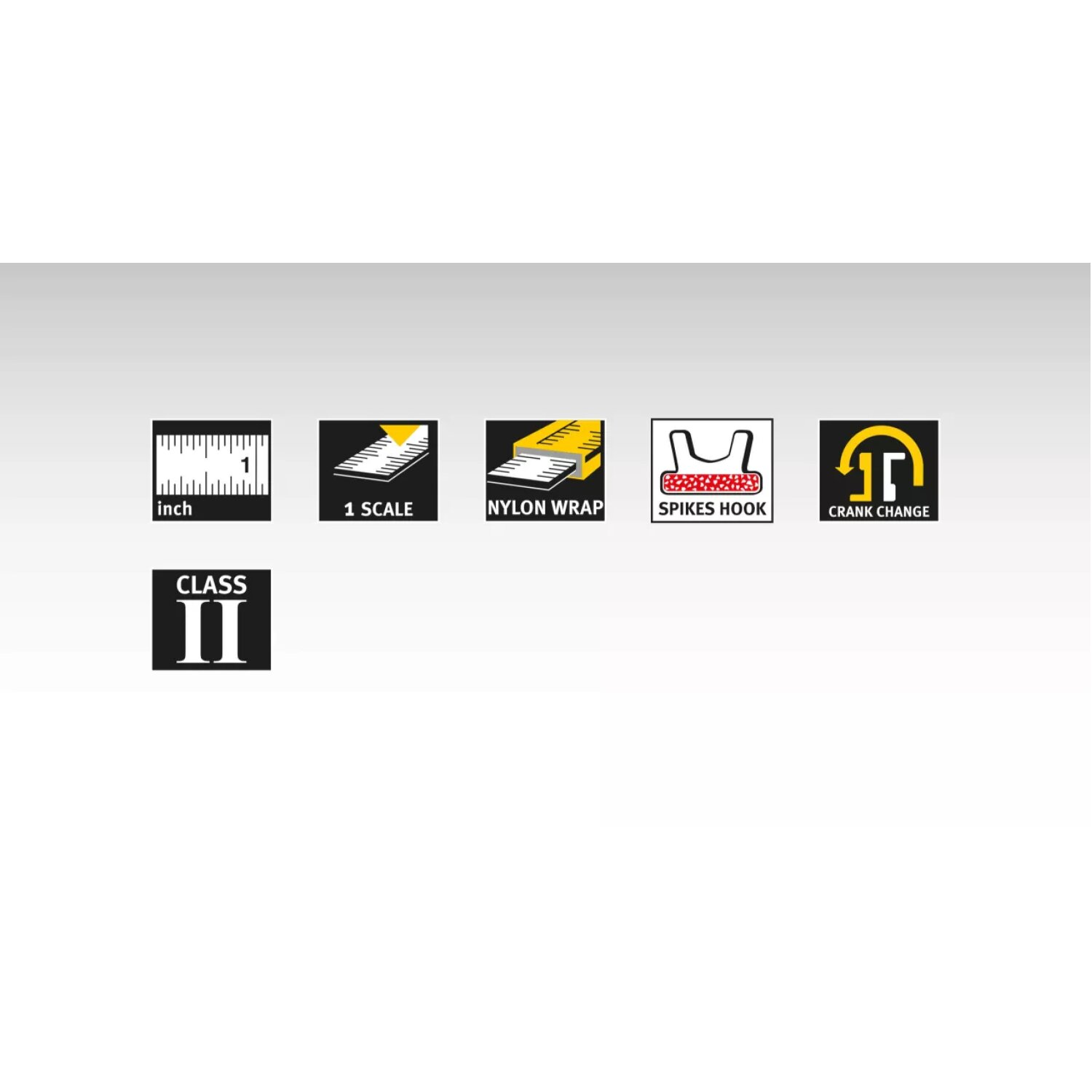• Rugged Y-reel tape measure with a scale in inches made of PC/ABS plastic protects the blade against shocks and impact.