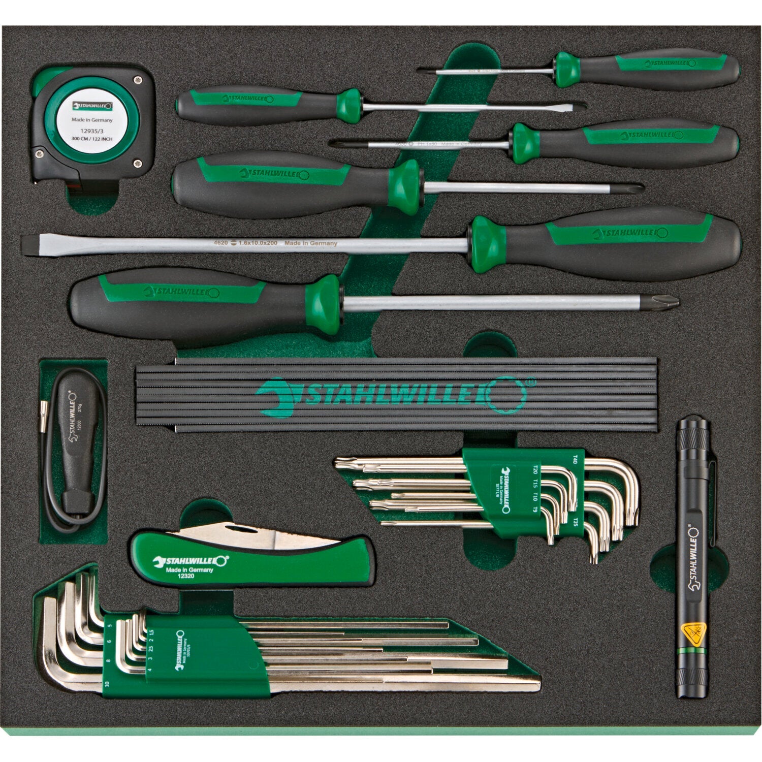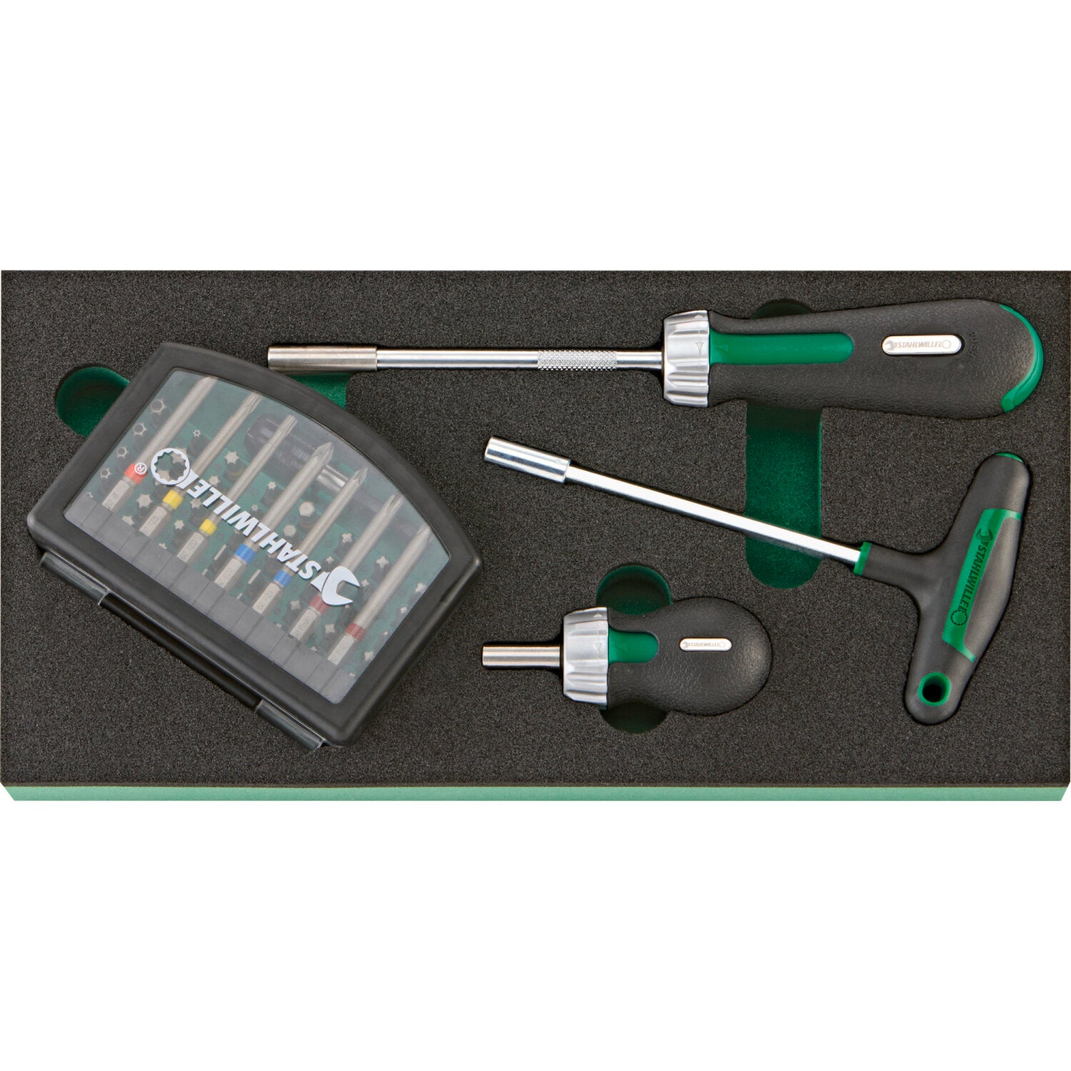 1 bit set no. 1206: 1 bit holder | L. 25 mm: SL4;5;6mm (2x) | PH1;2;3 (3x) | PZ1;2;3 (3x) | T10;15;20;25;27;30;40 (2x) | T BO10;15;20;25;27;30;40 | INHEX 3;4;5mm | L.75mm: SL6 mm | PH2;3 | PZ1;2 | T20;25 | 56-piece set