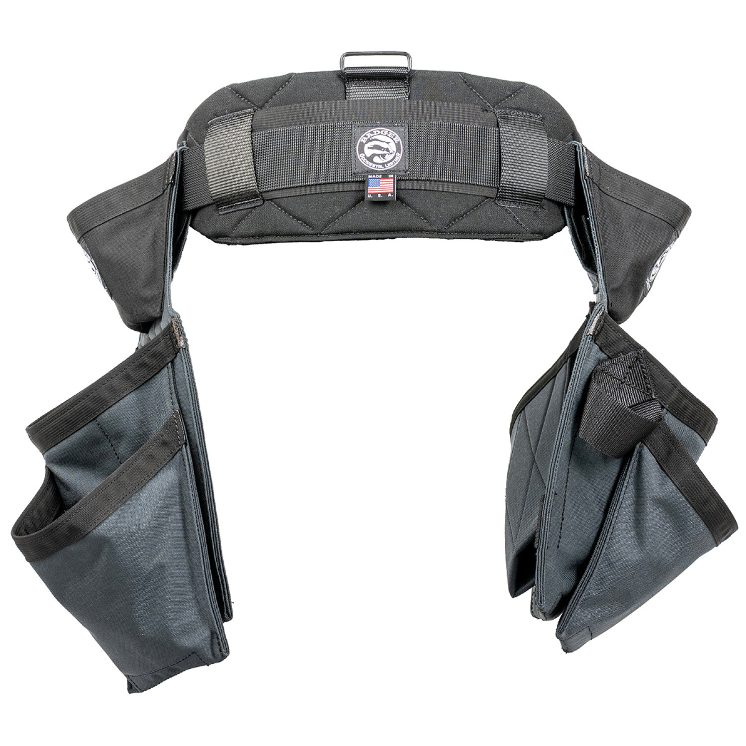- Our largest capacity pouches, with side-by-side lower pouches on the fastener side and a single lower pouch on the tool side