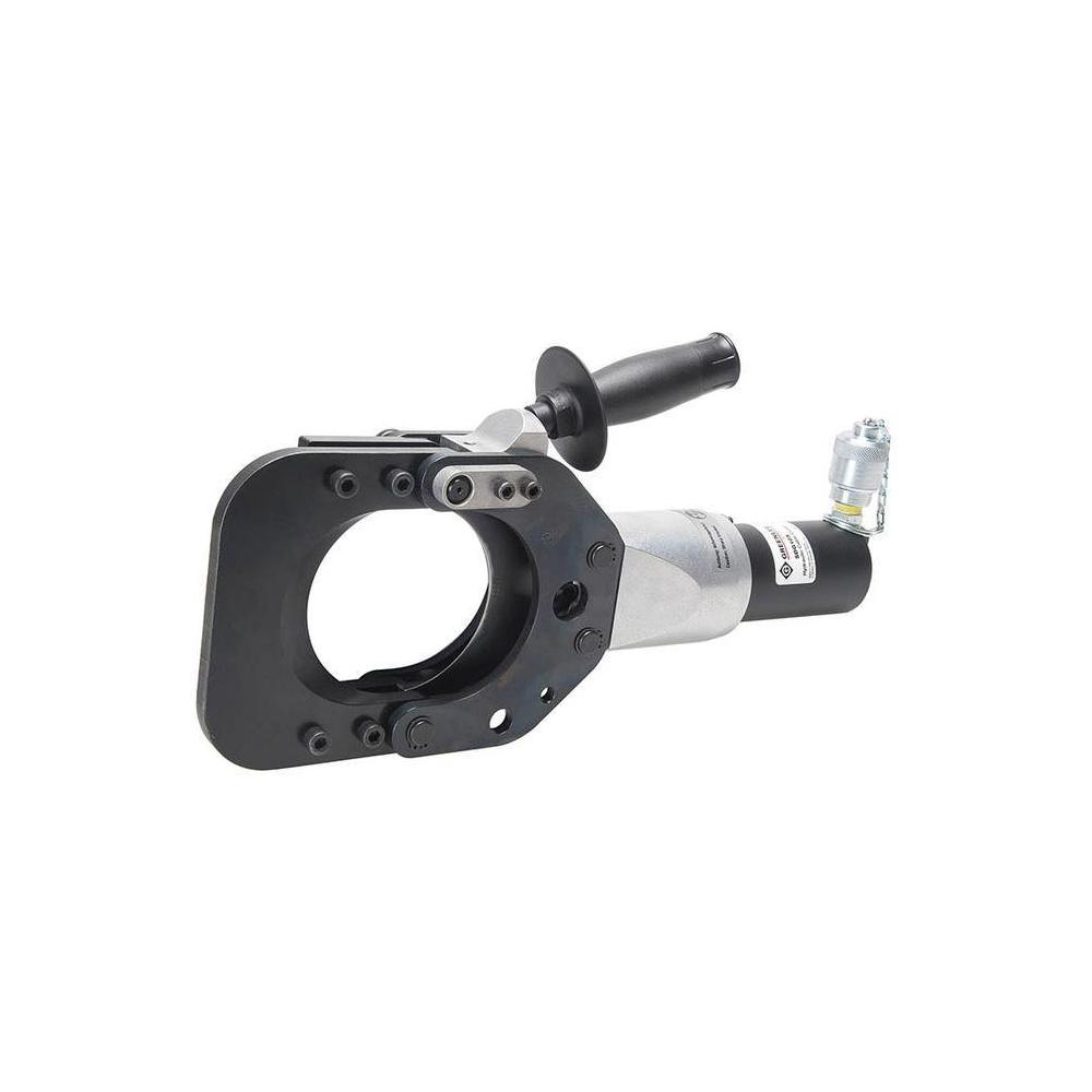Ideal for cutting larger diameter Copper and Aluminum power cables. Precision blades provide clean cut. Dual position handle for operations and transport. Guillotine cutting head with bolt interlock providing additional safety and cutting control. 3/8" NPT male screw type connector. 350 degree rotating head. Ideal for use with EHP700L battery pump.