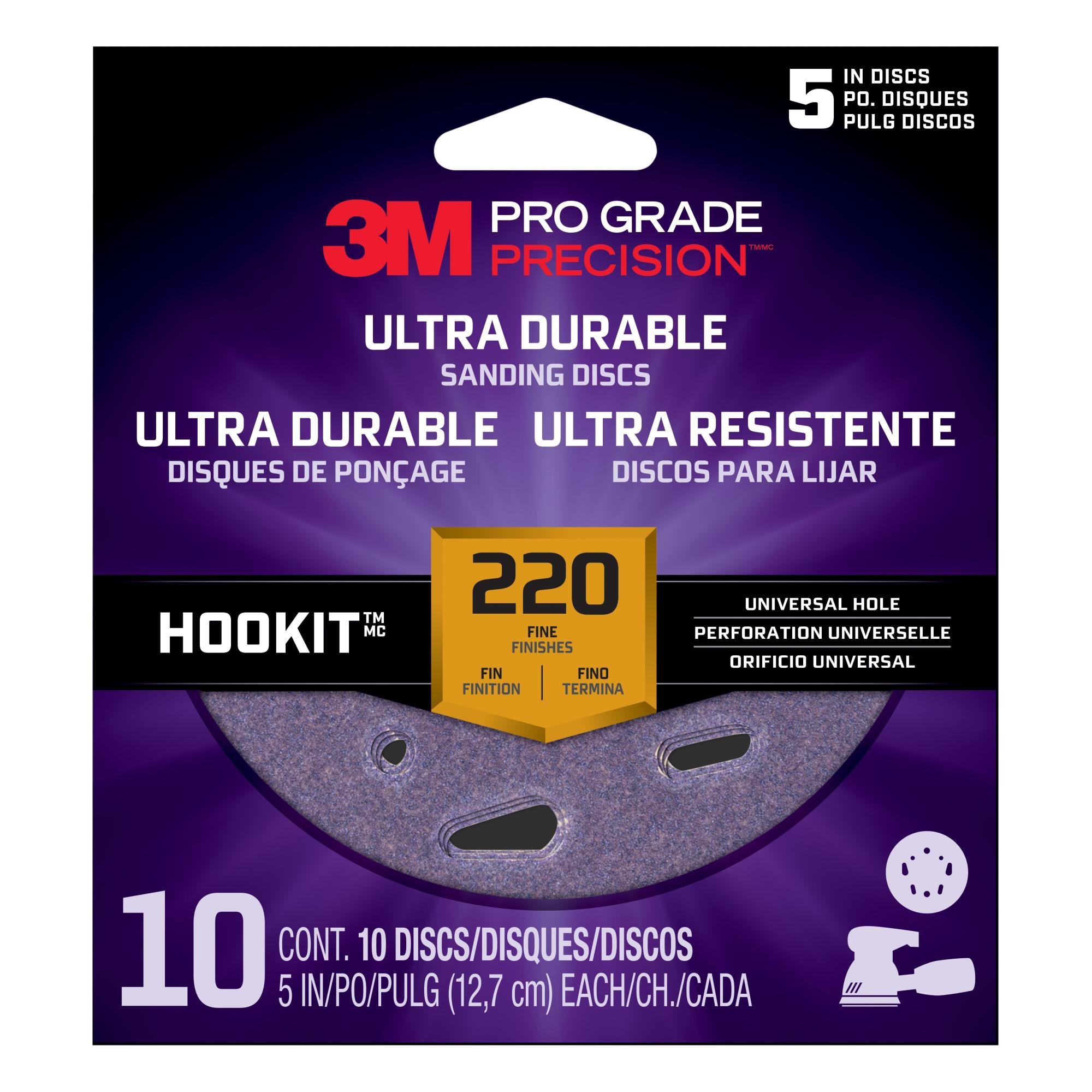 Hard working power tool abrasives that last from one job to the next. Whether you are sanding wood, plastic, or metal the 3M Pro Grade Precision Ultra Durable Universal Hole Sanding Discs are ideal for all stages of sanding. 3M premium mineral technology delivers a sanding disc that cuts fast and lasts long. Use with a random orbital sander. The hook and loop attachment system allows for quick and easy attachment to and removal from the tool. The unique universal hole pattern allows for efficient dust extraction on both 5 hole and 8 hole sanders.Hard working power tool abrasives that last from one job to the next. Whether you are sanding wood, plastic, or metal the 3M Pro Grade Precision Ultra Durable Universal Hole Sanding Discs are ideal for all stages of sanding. 3M premium mineral technology delivers a sanding disc that cuts fast and lasts long. Use with a random orbital sander. The hook and loop attachment system allows for quick and easy attachment to and removal from the tool. The unique universal hole pattern allows for efficient dust extraction on both 5 hole and 8 hole sanders.