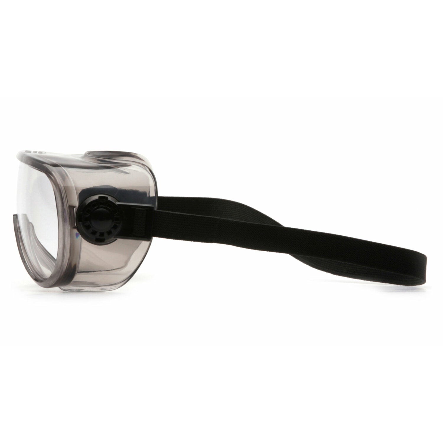 Pyramex - Goggles - Chem Splash-Clear Anti-Fog - Top shelf chemical splash goggle features generously sized heavy duty body and lens. Special one-way vent allows air to enter while keeping liquids out. Body tinted to reduce glare. Lenses provide 99.9% protection against harmful UV rays.