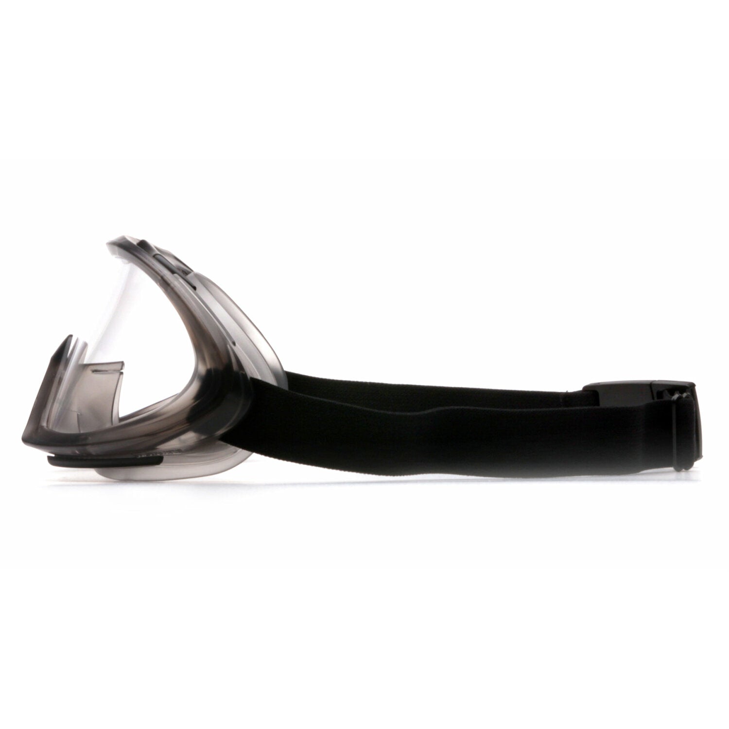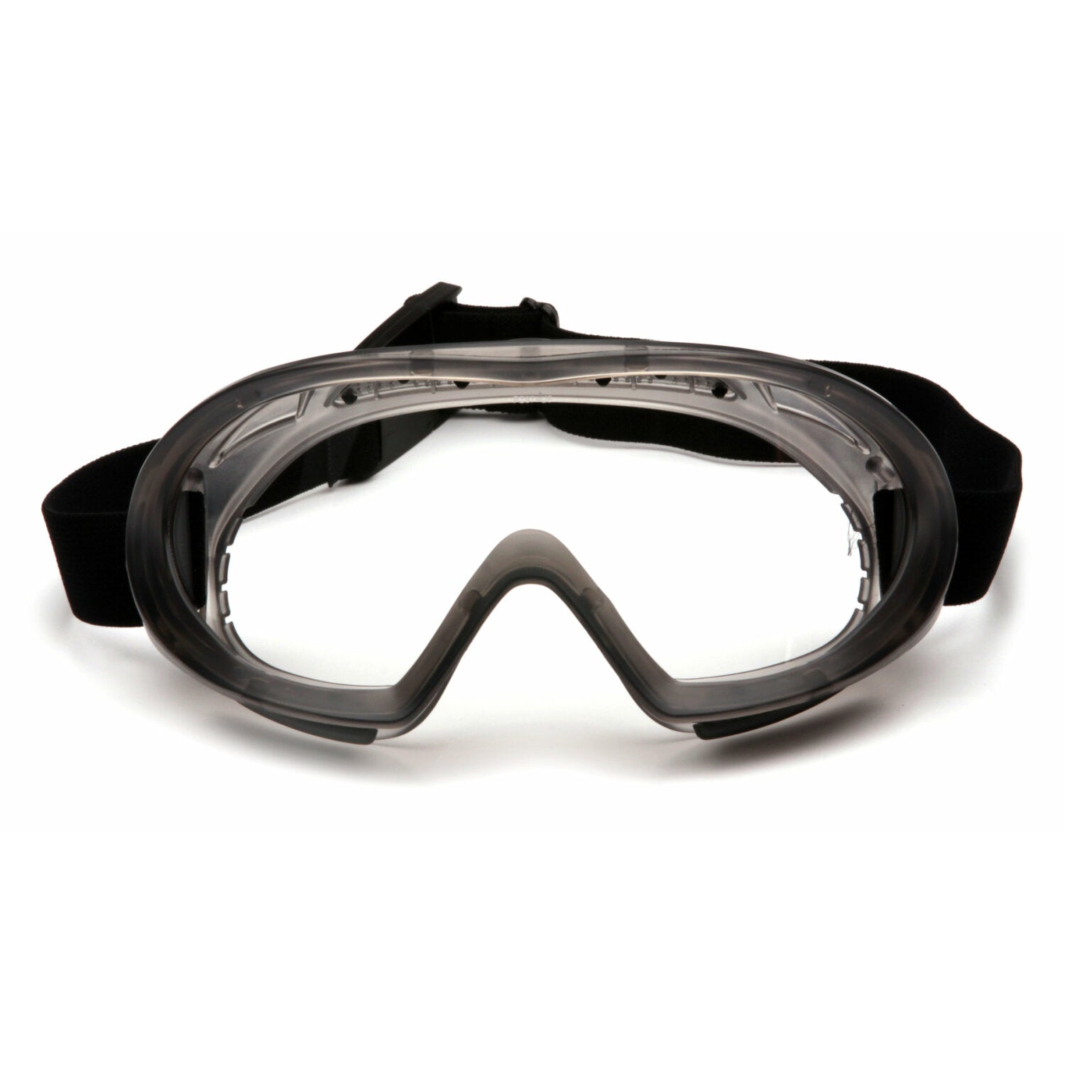 Pyramex - Capstone - Direct/Indirect-Gray Frame/Clear H2MAX Anti-Fog Lens - Dual purpose goggle adaptable to many different applications. Removable vent caps allow the user to remove when more ventilation is required or leave in place for unsurpassed chemical resistance. Cylinder lens is coated to prevent fogging. Soft PVC body conforms to facial contours for comfort fit. Fits over prescription glasses.